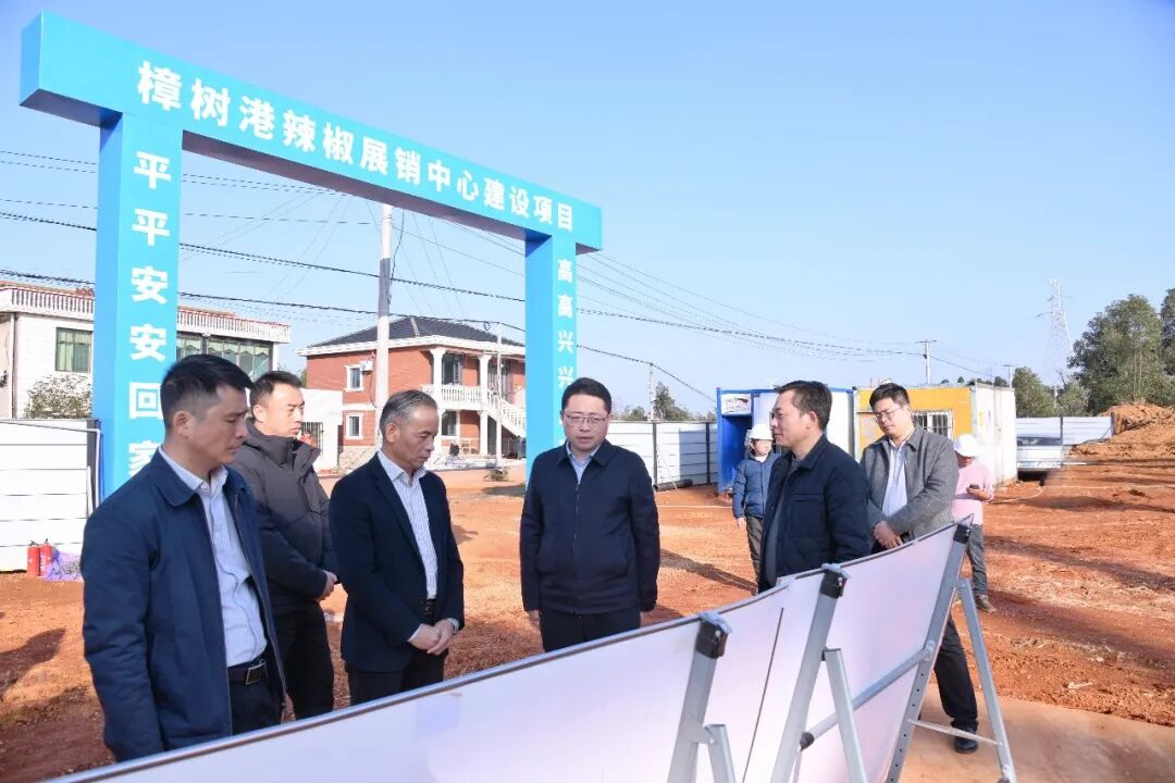 ▲刘世奇在樟树港辣椒展销中心建设现场调研。